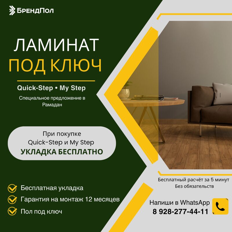Рамадан — время обновления дома 🌙 При покупке ламината Quick-Step и My Step укладка выполняется бесплатно. ✔ профессиональный монтаж ✔ га...