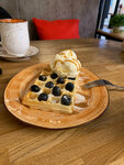 Уютная кофейня в центре. Много напитков, вариантов кофе. Приятные десерты, бельгийские вафли. Классный дизайн и подбор цвета. Есть розетки подзарядиться.