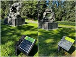 Парные скульптуры «Хлеб» (девушки со снопом сжатой пшеницы) и «Плодородие» (мужчина и женщина с корзиной фруктов в позе инь-янь), воссозданные по эскизам Веры Мухиной, появились на центральном входе в парк Дружбы 60 лет назад (уже после смерти Веры Игнатьевны). И это, как мне кажется, было очень смелое решение – как изваять обнажённых девушек, так и установить их в публичном парковом пространстве. Правда, изначально эти круговые бронзовые композиции предназначались для оформления Большого Москворецкого моста в 1938-39 гг, где они выглядели бы куда менее уместно. Архитектор Алексей Щусев, пригласивший Мухину в этот проект, был не в восторге от творческих идей скульптора, и сообщил, что выделенные на установку статуй деньги уже потрачены на облицовку моста. Мастера разругались, а спустя 15 лет (в 1963) олицетворяющие плодородие фигуры нашли своё пристанище в парке Дружбы, где и поныне привлекают внимание и притягивают взгляды прохожих. Хочется верить, не только и не столько монументальностью выразительных форм, сколько рельефной пластикой тел, мощью и силой движения (одна девушка передаёт сноп и выпрямляется, другая его принимает и склоняет голову под тяжестью ноши), грацией и изяществом, как, очевидно, изначально и задумывала автор. И символика скульптуры считывается хорошо, ведь обнажённое женское тело — символ плодородия и зарождающегося начала во всех языческих верованиях. Поэтому искать здесь эротику или закрывать глаза детям при приближении к мухинскому «Хлебу» вряд ли стоит: мне в воплощении замысла известного скульптура увиделась отсылка к древним обрядам на Руси