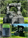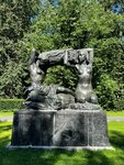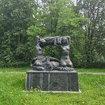 Входя в Парк Дружбы со стороны Ленинградского проспекта, увидел двух обнаженных девушек, воздевших что-то объемное над головой. Конечно не самих девушек, в натуре, а бронзовых - невысокую парную скульптурную композицию на постаменте из серого гранита. Сначала подумал было, что девушки отжимают белье, какой-то большой кусок скрученной ткани.. Ошибся. Оказалось, что это сноп пшеницы (и рядом лежат снопы). Зачем с ним производят такие сложные манипуляции и почему при этом необходимо принимать такие извилистые позы, а тем более зачем это делать в обнаженном виде не постиг (снопы, кстати, очень колются, участвовал как-то в уборке хлеба, знаю). Рассмотрев скульптуру ближе, и изучив вопрос теоретически, выяснил что это скульптура "Хлеб". Скульптура изваяна скульпторами Ниной Германовной Зеленской, дважды лауреатом Сталинской премии, и Александром Михайловичем Сергеевым, лауреатом Сталинской премии. Скульптура установлена трудами народного архитектора СССР, лауреата Ленинской и Сталинской премий Игоря Евгеньевича Рожина в 1963 году. Автор концепции и эскизов - знаменитый скульптор, академик, лауреат пяти Сталинских премий, народный художник СССР Вера Игнатьевна Мухина (которая "Рабочий и колхозница"). Рядом установлена парная тех же авторов скульптура "Плодородие". Интересно: сначала эта скульптура предназначалась для оформления Москворецкого моста (который у Кремля, и на который в 1987 году на самолете "Цессна-172" приземлился западногерманский спортсмен-пилот Матиас Руст). Еще интересно: оригинальная скульптура "Хлеб" (небольшого размера) находится на постоянной экспозиции "Крымский Вал: искусство 20 века" в Новой Третьяковке.