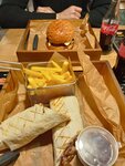 Местечко маленькое, но народу нет, так что комфортно, только некуда девать куртки. Цены очень завышены. При заказе бургера не спросили какой грамовки, но пробили, как большой бургер. Будем надеяться, что это он и был)) Бургер понравился, картошечка отпад, но.. шаурма отдавала душком, мясо прожарено, так сказать, медиум. Сама по себе на вкус никакая, а это всего 290г за 390р. 390р, Карл!! За 290г.!