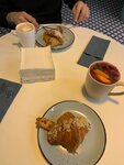 Во имя справедливости меняю предыдущий отзыв на пять звезд, так как заходил еще и абсолютно все остальное было очень вкусным, так что тот ростбиф, похоже, был исключением. Отличные десертные круассаны, круассан с лососем тоже классный (ростбиф второй раз не рискнул). Хлеб с клюквой просто отличный, и багет тут правильно сделан (но брать надо прямо свежими). Попробовал хумус и паштет, который делают тут же, хумус вкусный и при этом с совершенно ненавязчивым вкусом. Ну если уж немного конструктивной критики, то паштет немного водянистый. Но это мелочи. ——— Круассан с ростбифом откровенно невкусный — сам круассан отличный, а вот ростбиф процентов на 80 состоял из абсолютно резиновых и прозрачных жил или чего-то в этом роде, совершенно несъедобного, и вдобавок был просто залит чуть ли не банкой соуса. Возможно, в здании до этого была шаурмячная и призрак шаурмена вселился в готовившего этот круассан, по аналогии с заводом Лады из анекдота про проклятое место — не знаю, но есть это совершенно невозможно, круассан выкинул. За 450 рублей — шляпа полная. Круассан миндальный был ничего, опять же сама выпечка на пять баллов, но крема внутри очень много (возможно, снова призрак шаурмиста), получилось очень сладко. Второй раз бы не взял. Обслуживание очень вежливое. Интерьер красивый, но стулья и декор вкуса блюдам не добавят. В общем, твёрдая тройка.