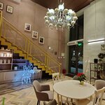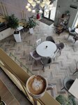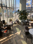 Красивый интерьер, очень уютно, просторно, много света! НО при таком размахе, при таком дорогом интерьере практически отсутсвует меню.... Только салаты и выпечка! Да, попить кофейку с десертом здесь оч приятно, но вот поесть нормальной горячей еды не получится, на завтрак даже каши, омлета, ничего нет.... Пришлось есть круассан, да вкусно, но не полезно) хочется увидеть в этом прекрасном месте полноценное меню)