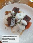Первый раз заглянули к вам с супругой пообедать. Общий вход в два ресторана, один со средиземноморской кухней, другой с европейской или итальянской. Мы выбрали второй) По обстановке всё отлично и уютно, классное решение на стене с большим зеркалом, которое увеличивает простор и глубину ресторана. По нашему заказу не всё гладко…что-то было отлично, а что-то даже пришлось вернуть. Кратко про наши впечатления и выбор по кухне: 1. Супруга выбрала теплый салат с печенью индейки. Печень приготовлена кусочками, которые оказались сырыми и при этом вкус заметно горчил. Явно ошибка в приготовлении блюда. Итог - вернули обратно. Спасибо менеджеру, которая сразу попросила дать обратную связь, это правильно. 0 баллов. 2. Тартар из говядины по словам супруги был превосходным. 5 баллов. 3. Маритоццо с заварным кремом, аналогично супруга отметила на отлично. 5 баллов. 4. Креветки с авокадо в соусе тандури и хумусом. Это уже был мой заказ. В целом хорошо, но сочетание вкуса креветок и соуса на любителя. Для меня 4 из 5 баллов. 5. Говядина по-бургундски с картофелем. Опять же, хорошо, но не отлично. Говядина была сухая и блюдо потеряло свой вкус. 3 из 5. 6. На десерт был мильфей с кремом патисе. Хороший десерт, но узнаваемый и довольно «тяжелый». Коржи прослойки можно сделать еще более легкими, а крем менее жирным. Но это на мой вкус. 7. Напитки отличные, игристый рислинг и бокал безалкогольного шардоне без нареканий. Отдельно можно отметить компетентность и вежливость персонала, тут вопросов нет.
