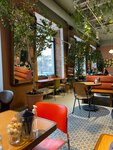 Вполне норм, если надо быстро забежать и перекусить . Чай с грейпфрутом приятный , курица со шпинатом и хумусом -средне , но сойдет. Ощущение , что тут чисто, но очень людно . Я давно не бывала в заведении, где НАСТОЛЬКО близко друг к другу посадочные места. С подругой тут не посекретничаешь за чашечкой чая , потому что посторонние люди сидят очень близко. Если вдруг вам достались места у окна , сидеть будет неудобно , потому что столик слишком низко , сиденье слишком высоко, бонусом задувает ветер от окна холод прямиком в спину . Если вы , как и я , старый интроверт с больной спиной , можете не получить удовольствия от посещения )))))