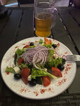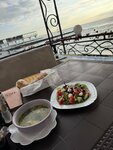 Хороший вид, красивая подача блюд. Сами блюда действительно с акцентом. Суп-лапша с полу-сырой лапшой. Бульон словно разбавлен водой. Курицы много, но она никакущая. Официант сказал, что так бывает 🫤 Уха вкусная 👍 В греческом салате попался волос. Чай хороший, вкусный, большой объем. Вкусный хлеб подали к супу. Пицца средняя на мой вкус. Ценник ниже, чем у соседей на пляже, визуал и подача явно выше. Брезгливые не оценят однозначно. Гурманы тоже. Зато по эстетике все прекрасно.