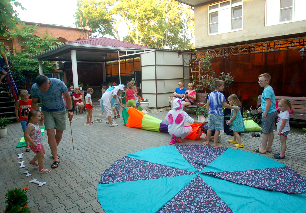 Второй год отдыхаем в этом прекрасном месте. Теплый бассейн, чистый и ужоженный двор. Приветливый и дружелюбный персонал)) Каждай день анимация для детей, пенная вечеринка. Дети просто в восторге. Вечером на большом экране дети смотрят мультики. А взрослве вечерами кино, как в кинозале. Везде царит теплая и приятная энергетика. Отдельное спасибо хозяйке Олечке Леонидовне☝️👏👏👏👏 Стильная, замечательная, приветливая Прекрасный организатор Советую всем, у кого детишки