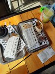 Место сильно разочаровало. По отзывам это было лучшее место города, но по факту это обычная забегаловка с завышенными ценами. Заказ готовился долго, это можно списать на количество позиций, так что этот момент можно упустить. Когда мы забрали заказ, то это был просто ужас на подносе. Бургер был ужасно упакован. После распаковки мы увидели это чудо: ингредиенты были сами по себе, котлета выпала, а соус был не в бургере, а на упаковке. Сам бургер был ледяной. «Мраморная» говядина оказалась с хрящами, и я чувствовал, что ем не бургер, а гренки. Одна из позиций была шаурма. Размеры разочаровали, но самое главное — ВСЯ начинка осталась в крафт-пакете! Шаурма была только с гриля и уже разваливалась... Следующим был фалафель... Я пробовал правильно приготовленный фалафель, и это был явно не он. Черный комок горелой и горькой субстанции. Когда я попросил ручку для написания отзыва, мне дали ручку, и она растеклась прямо в руках, запачкав мне штаны. Порадовало только какао 😊 В общем, из-за отсутствия выбора люди порой закрывают глаза на недочёты и ошибки заведения, при этом ставя 5 звезд. Я считаю, что это заведение абсолютно не заслуживает таких оценок!