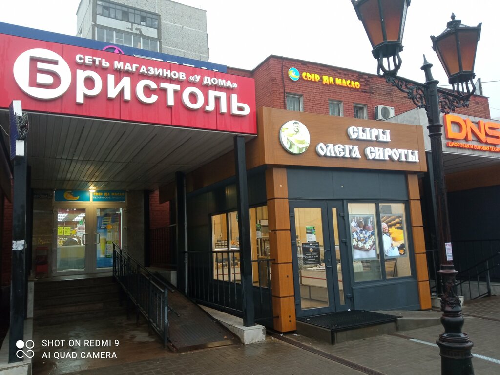 Дверь не только в магазин Бристоль. Налево пойдёшь продукты из Белоруссии. Прямо алкоголь. Направо аптека. Захожу во все три. Всё что нужно можно приобрести в одном месте. Очень нравится. И рядом вход в Сбер. Вниз почта. И телевизионная техника.