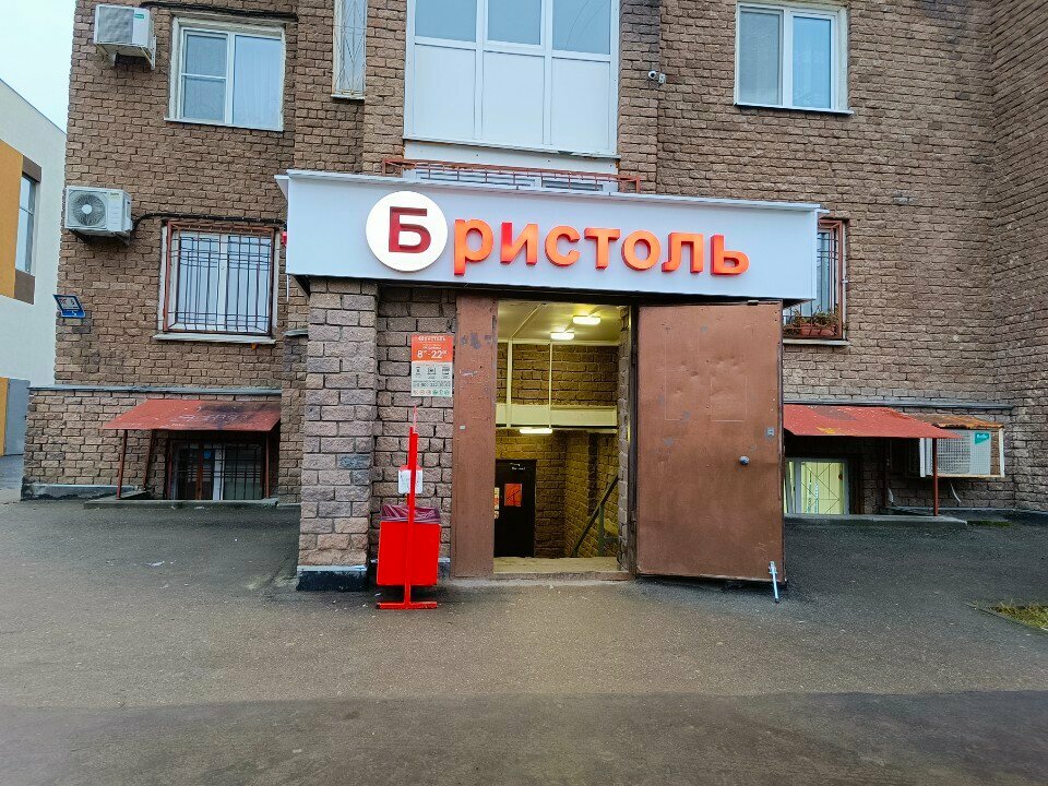 Классический Бристоль. Из плюсов: Всегда скидки. Алкоголь на любой карман. Есть множество продуктов с ценой ниже чем в продуктовом. Из минусов: Мало холодильников для пива. Нету некоторых хороших марок пива. Не ловит сеть, тк подвальное помещение. Тесновато.