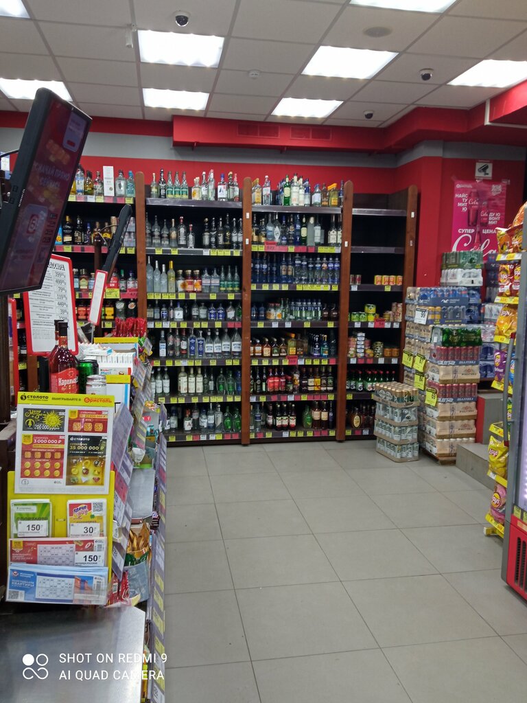 Неплохой магазин рядом с домом, в шаговой доступности от остановки. Разнообразный ассортимент алкоголя на любой вкус, также есть перекусы(чипсы, вафли и т.д.), молочка и прочее. Персонал вежлив и добр к покупателям. Чаще всего захожу за энергетиками, и персонал всегда помогает их достать с верхней полки в нужном мне количестве.