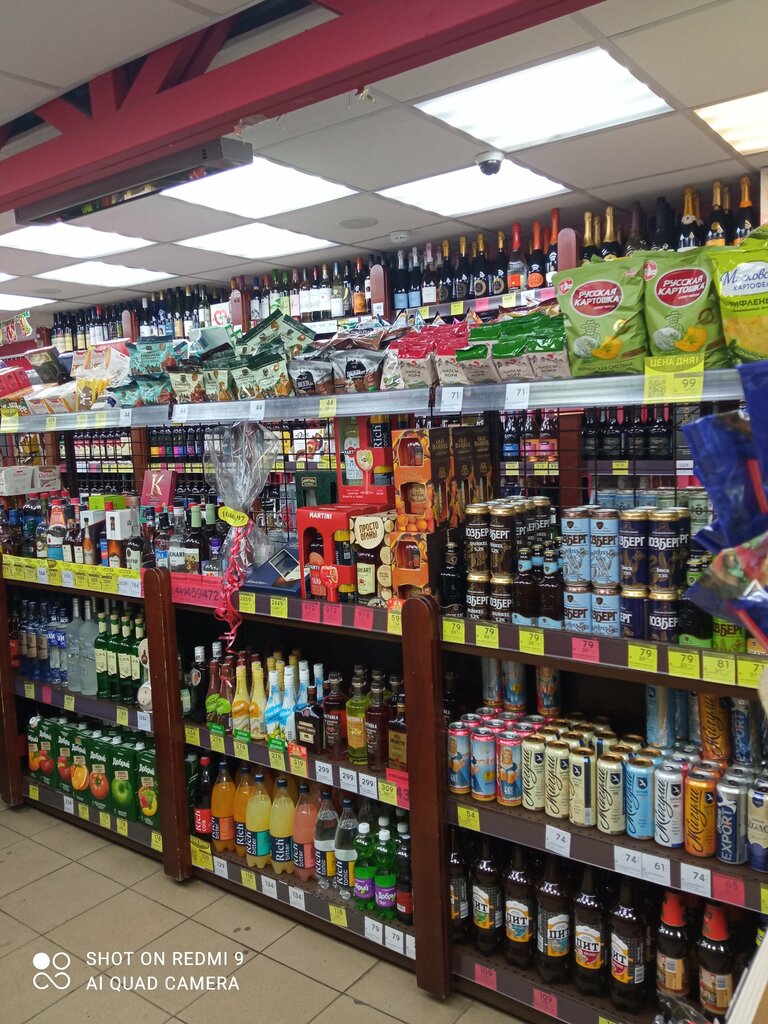 Хорошее место Много выбора не только для тех кто употребляет алкоголь но и для тех кто хочет купить что-то быстро перекусить Прекрасный персонал очень вежливый ☝️особенно хотелось бы подчеркнуть молодую красивую особу из персонала, она всегда подходит и помогает в выборе товара и прекрасно разбирается в товаре магазина