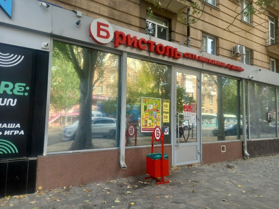 Бристоль в самом центре города. Очень удобно. Расположение хорошее, отличный ассортимент.