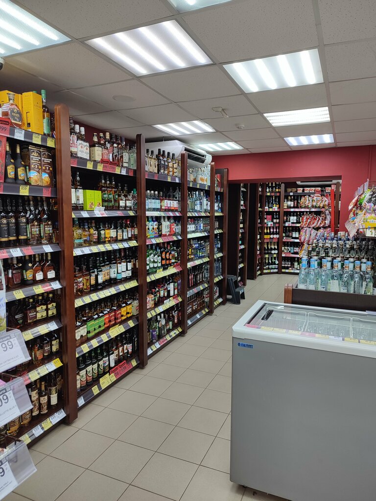 Как и любой алкомаркет, большой ассортимент алкоголя, вежливый персонал, нет парковки.