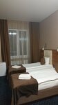 Долго искала, где остановиться в Калининграде. По отзывам решила здесь и знаете ни минуты не пожалела, рекомендую. Отель три звезды, и это очень твёрдые звезды. Соотношение цены и качества очень даже! Номер большой, светлый. Кровать двуспальная, постельное белоснежное. Большой санузел. Шампунь, гель для душа в дозаторах. В номере телевизор, холодильник, сейф, чайник с кофе и чаем, бутылочная вода. Уборка каждый день, полотенца меняют каждый день. Что мне понравилось, в мой приезд было очень комфортно и тихо. В комнате очень тепло, даже открывала окно, было душно. Просто я люблю тепло и свежий воздух. У меня были только завтраки, мне так было удобно, очень разнообразные. Каждый день новая молочная каша, кофе и кофемашин со свежей выпечкой на выбор, колбаска и сырная нарезка, варёные яйца, творог, сметана, сосиски с гарниром, каждый день новый, блинчики с мясом или просто с выбором джема, варенья и сгущеного молока, вобщем выбор большой и можно подобрать еа любой вкус. Очень приятный, вежливый персонал. Расположение достаточно удобное, от центра удобное удаление, удобно передвигаться как на такси, так и на общественном транспорте. Единственно, если это возможно, я бы добавила халаты. Благодарю за комфортное проживание в вашем отеле.