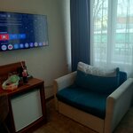О ель понравился. В принципе всё было, всё работало. В номере-чисто👍 Постель -свежая. Не застиранная. Душевая работала. Шкаф , фен все в норме. Правда фен после минуты работы выключался на две...🫤 Приходилось ждать когда остынет. Локация хорошая. Рядом отличный ресторан-бар "Британика" и "Белый тигр" Завтраки вкусные.