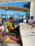 Еда вкусная, но в тот день когда мы были, не было свободных столиков там где мы хотели. Пришлось сесть где было свободно. Нет кондиционеров, очень жарко и душно было. Плюс слабое освещение. В общем на троечку. В принципе если сесть возле окон со стороны моря впечатления были бы другие, зачем мы и шли. Но к сожалению