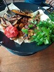 Заведение не понравилось, очень много народа, в зале душно, работают мощные вентиляторы, которые чуть ли не сдувают. Кондиционеры не включают. Заказ пришлось ждать очень долго. Заказали стейк Рябай, в итоге принесли Томогавк. Заказал себе ещё овощи на гриле. Так и не дождался, когда стали разбираться, оказалось, что заказ принесли супруге, при чём в одной тарелке с шашлыком. Разливное пиво тоже пришлось долго ждать, принесли тёплое и выдохшееся. Официанты не обучены, в блюдах не разбираются. Не рекомендую посещать это заведение...