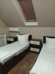 Очень уютное место, чистенько, бюджетно, приветливый персонал. Кафе не понравиось, но если вы с дороги - оно вас выручит, потому что рядом поесть негде. Сама гостиница находится в частном секторе, с магазинами и столовыми там все плохо, надо ехать на маршрутке. Мы были в бюджетном номере - 2 кровати, кондиционер, тв (не работал, правда, но нам и не надо было), холодильник, полотенца, 2 тумбочки. На этаже - 2 туалета (м,ж), 2 душа, чайник. Уборщица убирает каждый день.