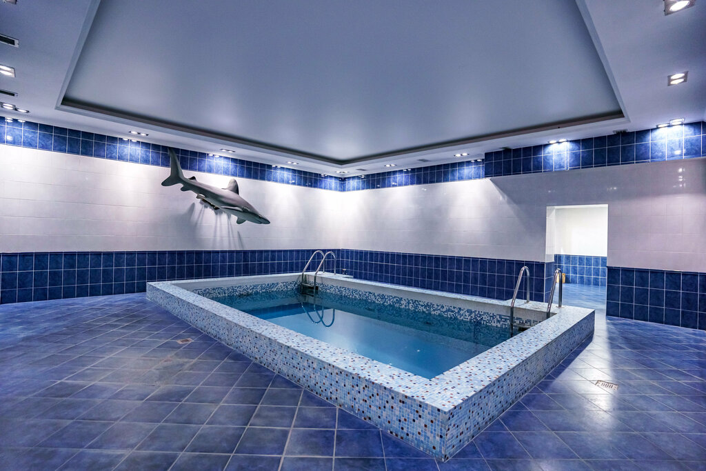 Просторная сауна, деревянная мебель, есть посуда, можно попросить, бассейн большой и в общем-то красивый. Только грязный, возможно, мы просто так попали, но плавающая волосня не располагался к купанию