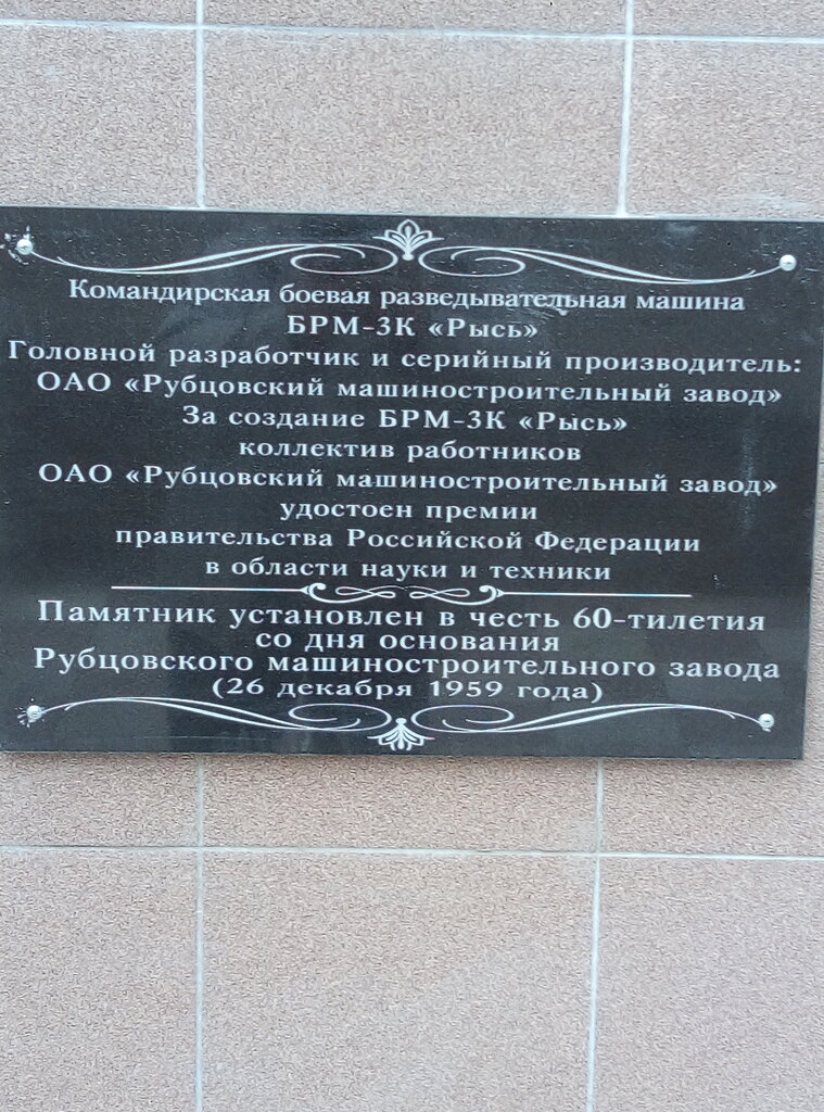 Monument to technology БРМ-ЗК Рысь, Rubtsovsk, photo