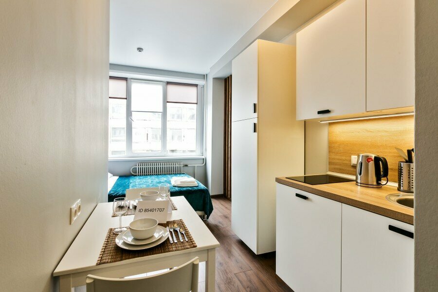 Мы предлагаем апартаменты разной площадью: 12 кв.м, 14 кв.м, 16 кв.м. Максимальное размещение – 2 человека (1 двуспальная кровать или 2 раздельные). Есть возможность предоставить доп. место (кроме студий 12 кв.м; по запросу).