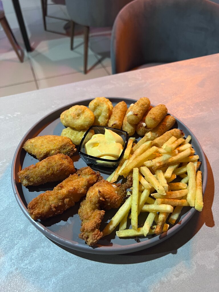 Очень душевный персонал. За 19 минут до закрытия приняли заказ, задержались на полчаса после закрытия - отлично. Разносолов нет, но оно и к лучшему - нет вариантов испортить. Супы-кремы на 4+, наггетсы и картошка также. В баре есть нестандартные варианты пива.