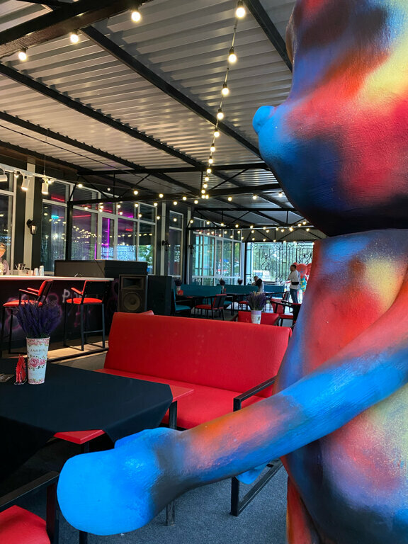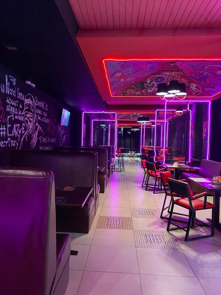 Задумка заведения интересная, необычные бургеры, очень понравился с курицей и ананасом 🤪 Ребрышки просто таяли во рту и понравился лимонад в их исполнении) Приветливый персонал и симпатичные парни - официанты, глаз радуется 😹