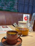 Были проездом 8.01.25г. Решили позавтракать, а точнее уже пообедать) в 12 открытие, мы были в 12:20. Заказали три Цезарь Ролл, суп куриный один и чай зелёный. Цезарь ролл на 5 из 5, свежий, вкусный, соус в меру, а вот суп куриный на 3 из 5, так как бульон не наваристый от слова совсем, как будто перед подачей просто налили кипячёной воды, чай 5 из 5, ароматный и вкусный. Поэтому друзья, твёрдая 4ка