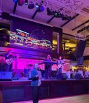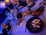 Предновогодняя встреча в Брудершафте Скажу, что мы рассматривали разные варианты для встречи подруг перед Новым годом. Но, в итоге, решили попробовать этот. Забронировали столик быстро, правда, не совсем поняли схему зала и выбрали стол прямо перед сценой… оплатили на следующий день, получились прилично - по 5500 с человека (это минимальный взнос), нас 4 подруги. Бронировали за 2,5 недели до встречи. В стоимость входили блюда из банкетного меню и шоу-программа. По меню определились так: салаты (цезарь и с ростбифом, кому какой), овощная тарелка, тарелка с морепродуктами, алкоголь (я не пила, у меня был морс), баранина с овощами, мороженое, сок, газ вода. Так как я по сумме не добрала, то до заказала шашлычки из лосося и «кофе брейк» (бутерброды, тирамису и чай). Как мы поняли, все выносится по времени: сперва салаты, потом горячее, кофе брейк и мороженое. Программа началась в 17. Мы приехали в начале седьмого. Не могли найти стол, официант уверял нас, что тот стол, на который мы думаем, не наш… мы еще раз осмотрелись, по всем показателям наше. Причем уже накрыто все, кроме тирамису и мороженого… сели. Подошла девушка и подтвердила, что стол наш. Музыка играла очень громко, мы не слышали друг друга. Потом вышла кавер-группа с плохо «выставленной» аппаратурой. И тут мы «вкусили» все минусы расположения стола. Корпоративный люд пустился в пляс прямо возле нас. Итог - не поесть, ни поговорить. Мы сделали пару фото и ушли в Мегаполис… бродили мы по нему больше часа… и с мыслью, что «оплачено», вернулись. По еде: салат с ростбифом я не поняла, все ингредиенты живут своей жизнью. Бутерброд с ростбифом = бутерброд с мясом. Тарелка с морепродуктами неплоха, особенно понравились креветки. Шашлычок из лосося трудно испортить в принципе, вкусный. Баранина с овощами - она была замаринована в клюквенном соусе, предполагается контраст - сладковатое мясо и кисло-сладкий маринад. На мой вкус, получились сухое сладкое мясо. Картофель почти сырой. Морс я пила промышленного производства, поэтому без комментариев. Мороженое как мороженое, я ела с шоколадным топингом. Программа: Кавер-группа - разные песни 80-90-00х. Когда 3ий раз заиграла «Он тебя целует», я поняла, что точно пора домой… Был танцевальный номер (эстрадный танец) и акробатический номер (две девушки и кольцо). В перерывах либо музыка, либо аниматоры - баба Яга, Дед Мороз со Снегурочкой. Шутки, конечно, массовые, местами пошленькие, но народу в зале нравилось. Призы - сертификаты в Мегаплис на колесо обозрения, боулинг или бильярд. Обслуживание: про поиски стола я уже писала выше. Весь вечер мы просили пересадить нас за другой стол, дальше от сцены (столов пустых было полно). Сперва нам ответили, что узнают, потом мы подошли еще раз- переселим, но без скатерти.., ну, ок. На третий раз нам отказали вовсе, сказали, что все столы забронированы. Скажу, и это мы озвучили официантам, мы просили и второй этаж, который был пуст совсем, но нам отказали все равно. Так как корпоратив, обслуживание «не успевало» за гостями. Нам казалось, что наш стол забыли совсем… в итоге мы ставили пустые тарелки и бутылки на соседний пустой стол… по первой же просьбе принесли контейнеры, но несмотря на внушительный список, по факту на столе было не так уж и много. Итого, приехали в начале седьмого, а в начале одиннадцатого уехали домой, причем больше часа бы