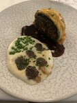 Посетили брунелло 8.05.2025, ужин от шефа Ильи Захарова. Ресторан описывать не буду, только блюда. Скажу, что искушен всякими вкусностями и удивить меня не так просто. Описывать блюда буду по порядку подачи. Первая была тарталетка с крабом цитрусовым мусом и украшено чёрной икрой. По мне вкус цируса помело сильно доминирует в блюде, но краб все еще чувствуется,черная икра только для украшения, вкус не ощущался, тарталетка из тончайшего теста исполнение на 9 из 10, вкус на 7 из 10. Второе блюдо палента со сморчком, тут я был приятно удивлен гармонии, хрустящая корочка паленты, сырный вкус, мус из фуагра вокруг, сморчок упругий нафарширован пастой из грибовс трюфелем, очень вкусно, каждый вкус чувствуется, разнообразная текстура, гармония вкуса, исполнение и вкус 10 из 10, достойно мишленовского ресторана, впрочем как и следующие 2 блюда. Третье это сибас великолепный нежный сочный вкус рыбы и мисо с приятной нежной текстурой, очень-очень вкусно, 10 и 10, между рыбой и мясом подали апельсиновый сорбет, 4е блюдо это говядина Веллингтон, подача кусочек говядины и небольшая горочка картофельное пармезанового пюре. Говядина наинежнейшая, мягкая втающая текстура выдержанного мяса, в оболочке из грибов и шпината, соус не разобрал из чего он, но очень дополняет говядину насыщенно мясного вкуса, подача и вкус 10 из 10. На десерт фрукты в сорбете юдзу и помело, вкус довольно необычный как по вкусу и текструре, сладкие фрукты и кислый юджу пюре-сорбет. Очень освежает, для меня слишком необычный, но интересный. Подача 8, вкус 7. В целом 3 основных блюда меня очень удивили, не ожидал получить такого наслаждения от целых 3х блюд в одном заведении. Эти блюда однозначно заслуживают наивысшей оценки. Спасибо шефу и персоналу, я и моя супруга кайфанули по полной.