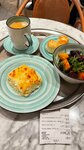 Столики настолько стоят рядом, что соседний стул упирается в ваш стол! Выдали напиток на подносе, двери тугие и сложно было выйти, часть пролилась. Завтрак вынесли сами но без приборов, салфеток и соли/перца. Зато нужно при входе распечатать заказ, пойти на одну кассу по номеру сделать заказ, потом с ним на другую кассу для оплаты, где выдадут номер для улицы, чтобы уже его вынести 🤪. В итоге, вместо того, чтобы посидеть и позавтракать на свежем воздухе, испортили все настроение. Видимо поэтому за столиками на улице сидят случайные люди с принесенным продуктами с собой, и везде валяются салфетки, которые по 2 на заказ после просьбы принесли, но они сразу же улетели, как и у соседей рядом. Посуду не убирают и она остается после ухода посетителей. Поэтому в данном месте можно брать еду только с собой, именно обстановка и кафе не рекомендую.