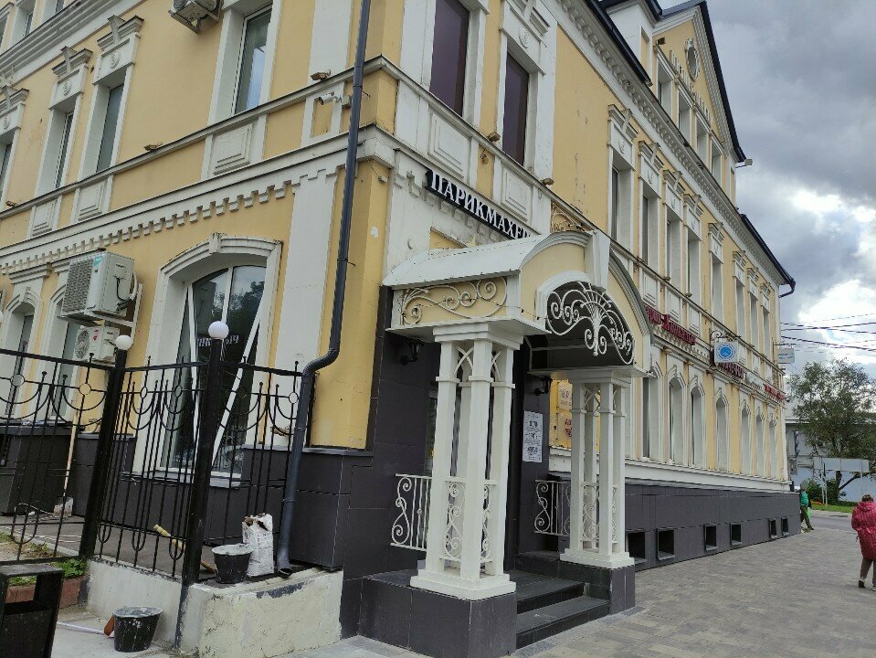 Хорошее чистое здание. На первом этаже пиццерия, на втором и третьем офисы. Всё очень аккуратно и гармонично.
