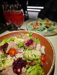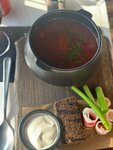 If you want to get acquainted with the national cuisine, then it should definitely be "Bulbashi", we decided and immediately booked a table)) And for good reason - the landing was complete. Cozy, stylish, comfortable chairs. The waiters are young, fast, friendly and unobtrusive guys. The menu was consulted quite professionally, and most importantly, the dishes were brought slowly, giving the opportunity to enjoy the food)) The draniki are delicious, the pate is the most delicate, and the salad with pears is interesting. Of course, we overreacted and ordered more than we needed)), we didn't know that the portions were so generous. I didn't take off the star for the dishes. They took the plates off the table and managed to get my jeans dirty. It's unpleasant(( Work with interns, please!