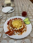 Были проездом. Искали место перекусить, случайный выбор пал на это заведение. Опишу максимально подробно, потому что очень и очень редко в гостеприимном и вкусном Татарстане (в общепите) встречали такое тотальное разочарование по всем статьям. Взяли - 2 салата( венигрет и морковчу), горячее одно- лагман, 1 кебаб с луком, 2 кусочка хлеба, 2 блина с творогом и сметаной, 1 чай и 1 зерновой кофе. Чек- 800 руб. По факту- первое было подкисшее, по виду абсолютно непрезентабельное какая то мешанина со спагетти и мелко нарезанным мясом, разваренными в кашу овощами (есть не стали), блины оказались с заменителем творога(тоже оставила на тарелке), люля сухой и тонкий, салаты кислые, чай- цвета воды с лимоном без чая. Практически все осталось на столе. Самая фишка- полный игнор санитарных норм и уважения к покупателям. Когда помыла руки и выходила из (небольшого и не слишком чистого) санузла (общий платный на этаже магазина, в том числе для посетителей кафе), увидела, как в туалет из кухни направился повар в рабочем облачении. Вишенка на торте. Не кафе, а помойка. Хорошо, что не отравились.
