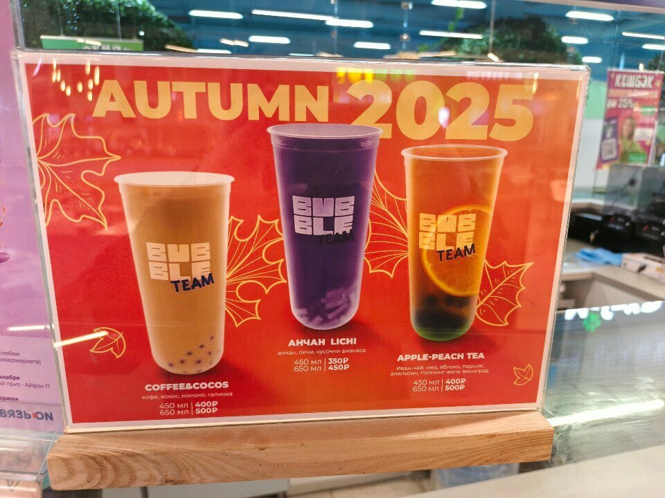 Очень вкусные напитки, огромный выбор наполнения напитков. Заказывали Бабл ти, детям понравилось. Стаканчик выдается запаенный пленкой сверху, трубочки в индивидуальной упаковке! Вежливый персонал оказывает помощь в выборе напитка. Ожидание не долгое. Цены приемлемые. Пожелание: побольше бы шариков в большом стаканчике готового напитка.