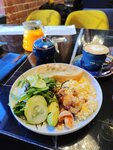 Очень вкусно. Очень понравилось, что к завтраку добавляют комплимент. Уютная атмосфера, красивый интерьер. Отзывчивый персонал. Обязательно приду сюда ещё раз.