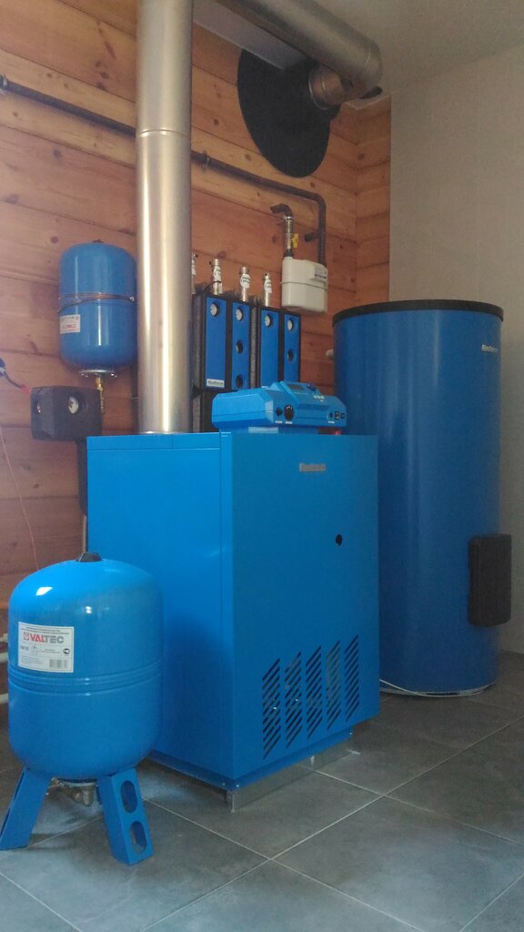 Индивидуальной сборки газовая котельная для частного дома площадью 150 - 200 м2 с газовым котлом, мощностью 24 квт, с бойлером косвенного нагрева 200 л, с дымоходом и расширительными баками, с запорной арматурой, трубопроводами и всеми необходимым...
