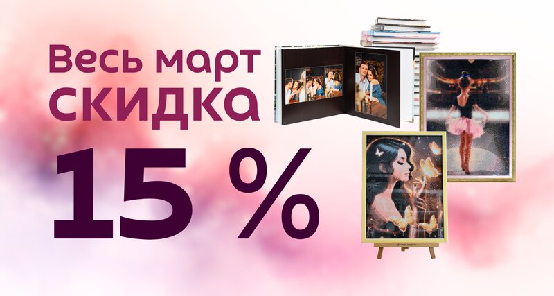Весь март дарим скидку 15% для дам на все услуги оформления и фотокниги!