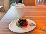 Уютное место,приятная атмосфера.Оформлен в современном стиле и что не мало важно чисто✨Еда и напитки на любой вкус,сэндвичи,десерты,комплексные обеды вообщем голодным не останешься🔥Для любителей чая есть чайная карта,что очень порадовало.Приветливый персонал.Однозначно рекомендую и буду советовать своим близким и друзьям!