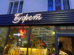 Посетили "Буфет" в субботу вечером в самый пиковый час. Неудивительно, что веранда и зал внутри были заполнены полностью – популярность места говорит сама за себя. Нам очень повезло: как раз освободился столик, и мы смогли расположиться. Что особенно впечатлило: 1. Профессионализм персонала: несмотря на очевидную загруженность и "плотную посадку" гостей, весь персонал был исключительно приветлив, внимателен и доброжелателен. Это создавало очень комфортную атмосферу даже в условиях наплыва посетителей. 2. Оперативность обслуживания: учитывая полный зал, мы готовы были к задержкам, но заказы, включая пиццу, приносили быстро. Пицца буквально была "с пылу, с жару", что особенно ценно при такой загрузке кухни. 3. Широкий барный ассортимент: отличная подборка настоек и наливок. 4. Живая музыка, играл скрипач. Музыкальный фон создавал непринужденную и приятную атмосферу, искренние аплодисменты публики после каждого номера говорили сами за себя. Буфет - отличное место, чтобы задать тон выходным или начать вечер. Идеально подходит для того, чтобы встретиться с друзьями, насладиться аперитивом и живой музыкой в теплой, душевной обстановке. Огромное спасибо команде за слаженную работу и создание прекрасного настроения даже в самый загруженный час! Обязательно вернемся и рекомендую к посещению
