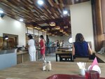 Ужинали в данном кафе в день отъезда из Астрахани. Наконец-то нам попалась съедобная еда! Хотя на вид мясные продукты тоже были слабо опознаваемы, так что мы чуть не развернулись обратно к выходу, не продегустировав, как произошло ранее со столовой "Зам-Зам". Кафе находится на 5 этаже торгово-офисного центра, куда можно попасть на красивом панорамном лифте. Взяли рис, свиные отбивные с кабачком, выпечку с ягодами и чай. Хотя "отбивная" оказалась мелко порубленными и сформованными кусочками. На двоих нам насчитали 580 р. Потом вспомнили, что после 16:00 у них положена 25% скидка и назвали цену 380 р.