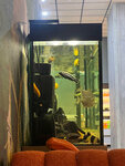 Прошу срочно обратить внимание на серьёзную проблему с аквариумом в зале!!! В нём содержатся несовместимые виды рыб: одну из рыбок (скорее желтая цихлида) систематически загоняют и всю искусали, она постоянно прячется за фильтром, стоит вертикально, не плавает. Выглядит как плохие условия содержания. Для гостей наблюдать такое неприятно и неэтично. Аквариум в общественном пространстве. Это часть атмосферы заведения, и хотелось бы, чтобы он вызывал приятные эмоции, а не чувство дискомфорта.