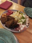 Хочу написать отзыв не о месте, так как там не был, а о еде которую я заказал. Меню у ресторана не большое, но есть из чего выбрать. Расскажу о всем что заказал: 1. Шашлык из свинины, достаточно не плохой, хорошие кусочки мяса, из всех кусочков попалась одна жилка, но есть минус на картинке нарисован зелёный лук, вместо него была кинза которую я ненавижу. 2. Соус шашлычный, хороший, из помидор, настоящих помидор, не кетчуп, но опять же зачем то там добавлена кинза..... 3. Соус тар-тар, на самом деле не тар-тар, майонез + сметана, ну хоть кинзы нет, добавлен зелёный лук, пойдёт. 4. Салат из овощей, прям хороший, свежие овощи, вкусно, мне понравился, к мясу самое то. 5. Салат из капусты, это какая то жесть, попробовал и выбросил в помойку, он стоял минимум с утра, капуста не то что не хрустит, она мягкая, вкус отвратительный, есть не стал. 6. Антрекот из свинины, ну что могу сказать, мясо вкусное, мягкое, просто супер, но опять же в наборе кинза, запах от неё противный до тошноты, но само мясо пахнет очень вкусно. Ресторан достаточно хороший, есть минусы, но плюсов побольше 3 из 5. P.s. Уберите кинзу, она ужасно противная.