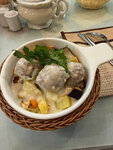 Маленький уютный ресторан. При заказе горячих блюд предупреждают что ожидание будет 30 минут, хотя супы принесли быстрее. Попробовала клопсы. Это не фрикадельки, мясо более плотное. Всё было вкусно.