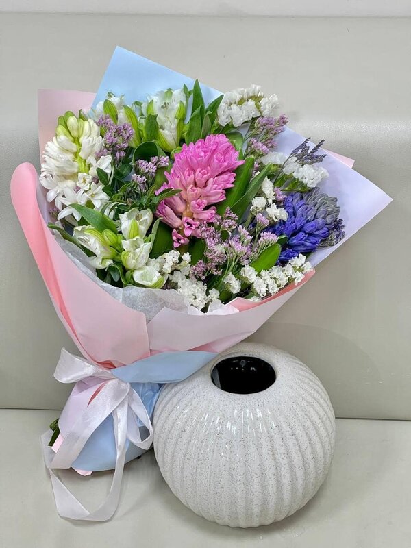 На 18летие нашей дочки-студентки, мы выбрали салон "Букет" для поздравления нашей именинницы. Наш формат "родители на удаленке") Дочке был вручен конверт с адресом этого салона, куда она и пришла в свой ДР за ее букетом-подарком. Я искренне благодарю Татьяну, которая поддержала идею поздравления и подготовила очень красивый и нежный букет. И ваши цветы и Ваш добродушный прием мы не забудем никогда!!!! Спасибо Вам от всего сердца!