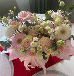 Букет в нежных оттенках прекрасно подойдёт для любого торжества, первого свидания, дня рождения, а так же как подарок молодым в день свадьбы. Ароматные розы, гвоздики в сочетании с кустовой хризантемой будут радовать своей свежестью и красотой .