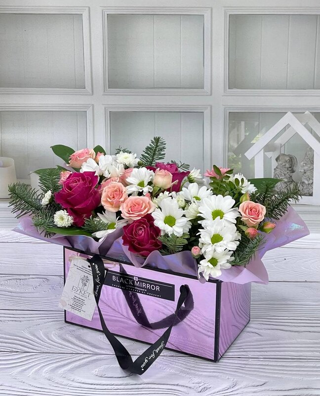 В данном букете сочетается нежность и изысканность кустовых роз, а также чистота и свежесть белоснежной эустомы, создавая атмосферу романтики. Такой букет прекрасно подчеркнёт ваш вкус и станет замечательным цветочным подарком на любой праздник.