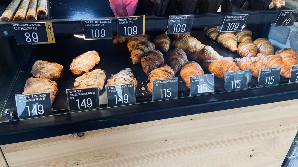 Уже в который раз беру 4 круассана по акции 4+1, а подарочного просто нет. Альтернативу сотрудники не предлагают, цены растут. Частенько бывает, что покупаешь круассан без начинки и обнаруживаешь что в нем начинка только уже дома когда разрезаешь его чтобы намазать сыром и положить внутрь лосось. Приходиться возвращаться и менять круассан.