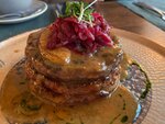 A delicious, atmospheric place. Excellent staff and knowledgeable chefs. Positive: It was 5+ degrees hotter, the stuffing was wonderful, the tinctures were very pleasant (especially horseradish) Minuses: The local beer (wheat) is not tasty. From the Word "absolutely". Farm poultry pate is something completely unintelligible, as is the pickled onion with which it is served. Solid 4+. Excellent locally despite the flaws
